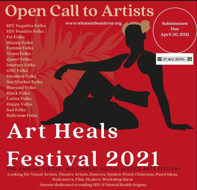 The Art HEALS Festival is a Virtual Social Justice Arts Festival that will be tentatively held from August 27-29, 2021 possibly at multiple venues on the East side of Austin, Texas and Virtually by WhatsintheMirror. As a multi-disciplinary festival, Art Heals Festival features art events, panel discussions, speakers, and workshops addressing local social justice issues including eliminating HIV and mental health stigma.